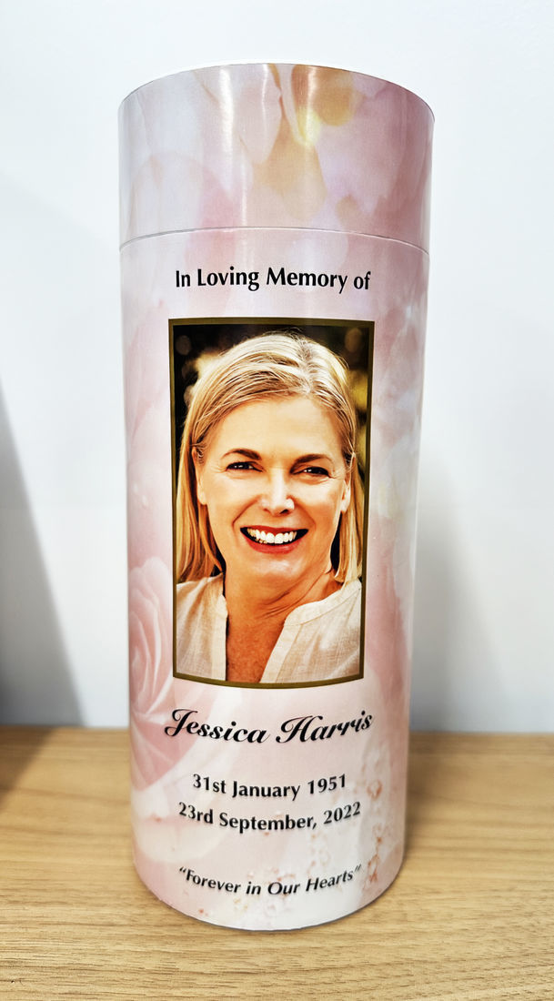 Ashes Scattering CylinderCan be used for scattering or keeping ashes Customised with Photo, Name & Dates Medium (Child Size) - Approx size 235 x 95 Large (Adult Size) - Approx size 320 x 130 |